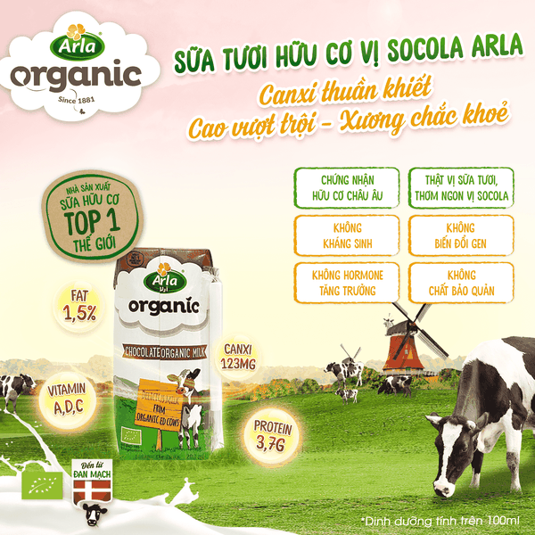 Arla là thương hiệu sữa nhập khẩu 100% châu u được chọn lọc tại Châu Âu và là thương hiệu được hoàng gia Đan Mạch sử dụng.